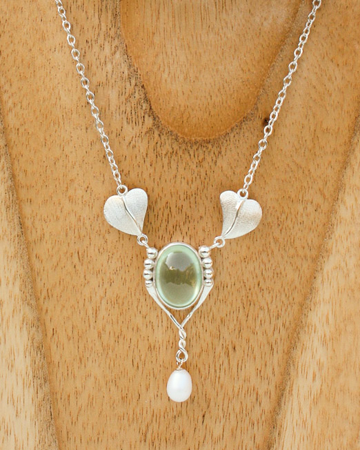 27th April 2016 522 x 652 Art nouveau style silver necklace set with a phrenite cabochon and pearl Starboard