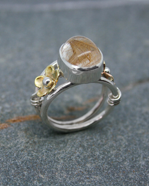 25th April 2016 522 x 652 Cabochon rutilated quartz silver ring with bronze and brass detail Starboard