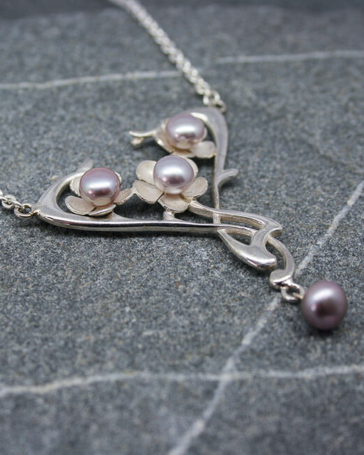 25th April 2016 522 x 652 Sterling silver Art Nouveau style necklace with pearls Starboard